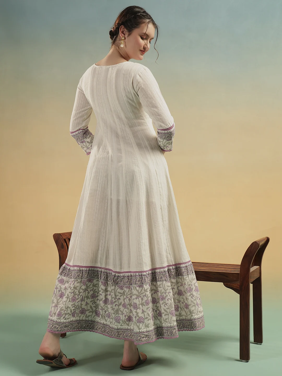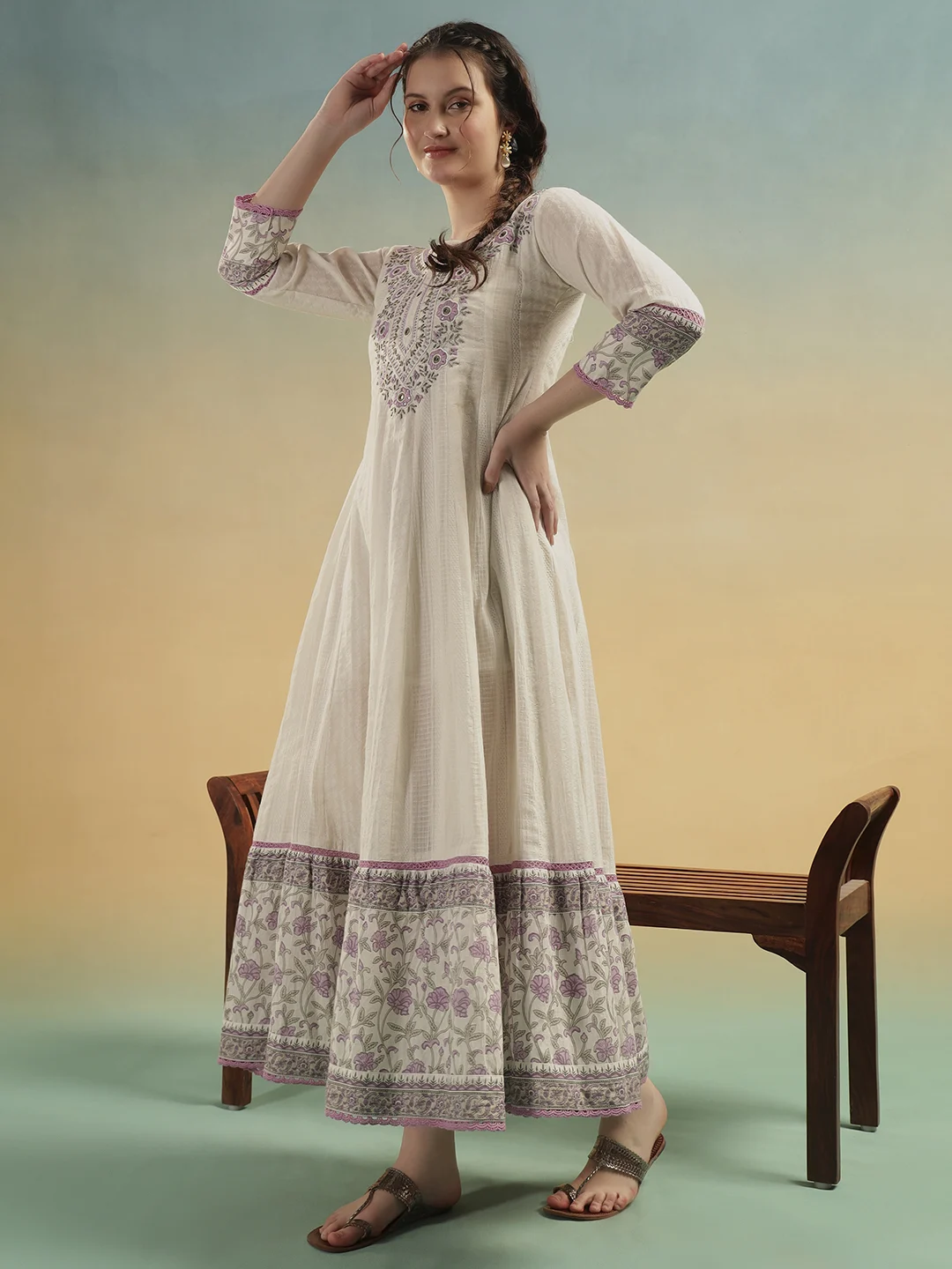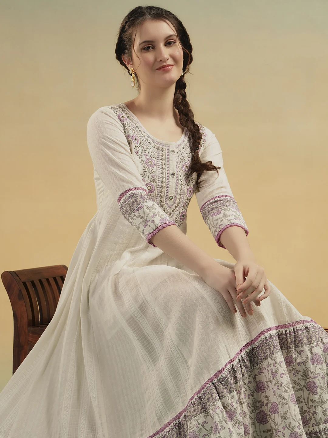 Crafted for women who love comfort without compromising elegance, this ivory cotton A-line dress blends graceful movement with timeless detailing.
