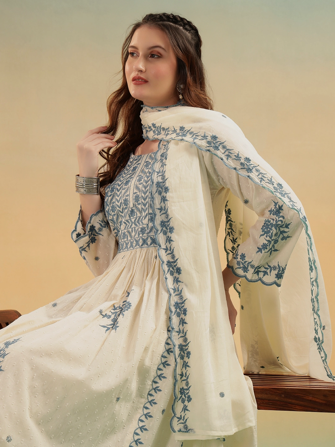 Meet Noor — a timeless cream cotton A-line suit set designed for women who love effortless elegance. Crafted in breathable cotton with delicate embroidery, this outfit brings comfort, grace, and confidence to your everyday style.
