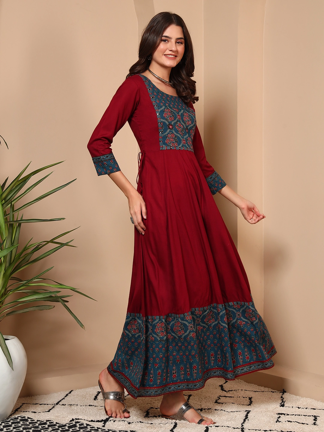 Riwaayat brings together timeless tradition and effortless comfort. Crafted in breathable cotton, this red maxi dress with traditional printed detailing is designed to make everyday dressing feel elegant, confident, and easy.